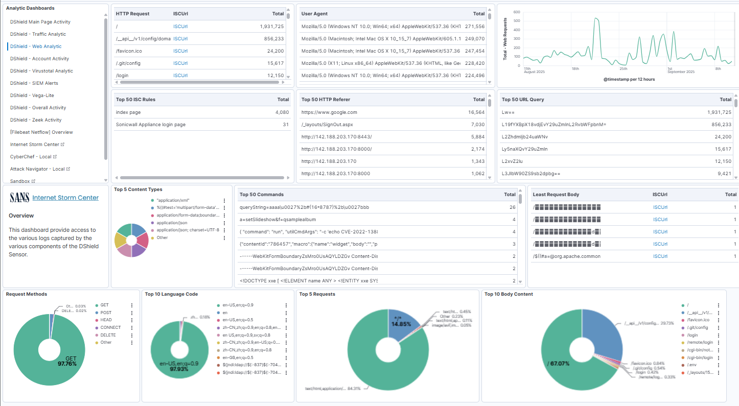 Since the last update [5], over the past few months I added several enhancements to DShield SIEM and webhoneypot sensor collection that included an update to the interface to help with DShield sensor analysis. I updated the main dashboard to have all the main analytic tools listed on the left for quick access to all the sub-dashboards.