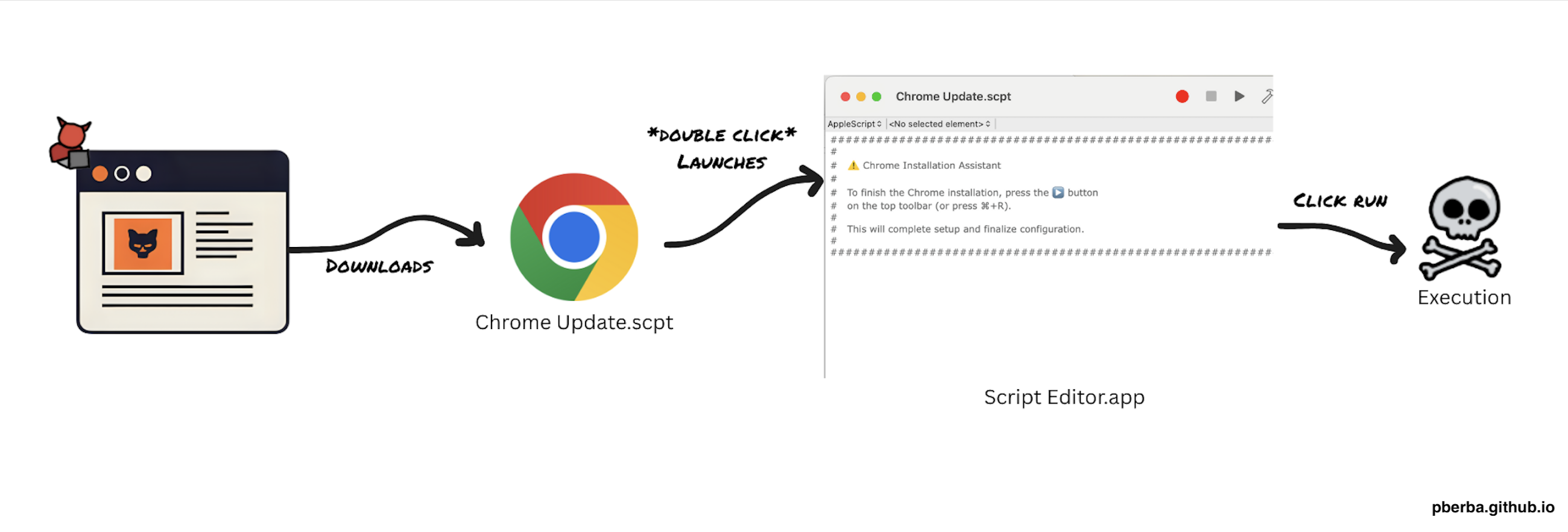 • New DigitStealer macOS Malware Spotted — A new macOS stealer called DigitStealer has been observed using advanced hardware checks and multi-stage attacks to evade detection and steal sensitive data. According to Jamf Threat Labs, the malware is distributed via malicious disk image (DMG) files that launch a text file to retrieve a dropper from an external server, which, in turn, performs a number of checks to circumvent detection and run curl commands to fetch additional components capable of harvesting data and creating persistence. The development comes as threat actors are using AppleScript scripts masquerading as update utilities for Chrome, Microsoft Teams, and Zoom to deliver macOS malware, like MacSync and Odyssey, while bypassing Gatekeeper protections. “By default, a .scpt file, whether plain text or compiled, opens in Script Editor.app when double-clicked,” security researcher Pepe Berba said. “Comments in the script encourage the user to run it, while hiding the real code behind a large number of blank lines. “Clicking the ▶️ Run button or pressing ⌘ + R executes the script, even if it’s quarantined by Gatekeeper.”