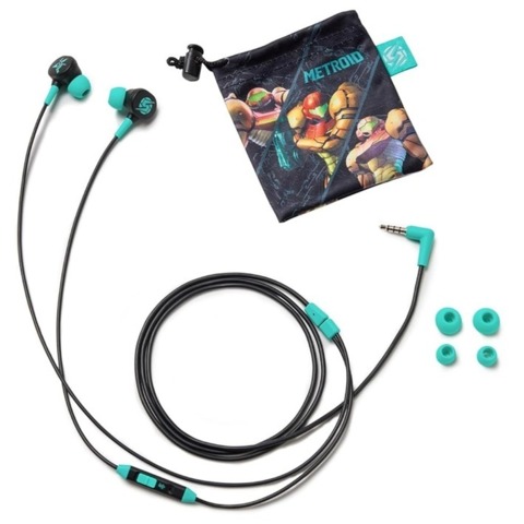 The $25 earbuds feature Metroid iconography on each side and three swappable silicone tips. It has an inline microphone for voice chat, 8mm dynamic audio drivers, and an adjustable slider to prevent the wires from becoming tangled.