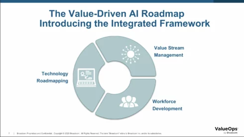 ValueOps by Broadcom has created an AI roadmap so organizations can start to look at it “in the same way we used to look at managing a transformation or rolling something out… and make sure that it’s aligned to the value you hope to get out of it, connecting it to things like your OKRs,” Knight said.